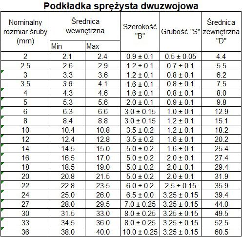 Podkładka sprężysta dwuzwojowa, podkładka sprężynowa dwuzwojowa, pierścień sprężysty dwuzwojowy, podkładki sprężyste na śrubę: